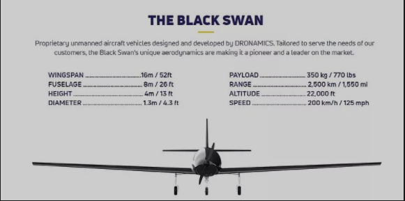 官方声明称,黑天鹅可以在短至 400 米的未铺砌跑道上运行,这将使 DRONAMIS 能够为最小和最偏远社区的客户提供服务。
